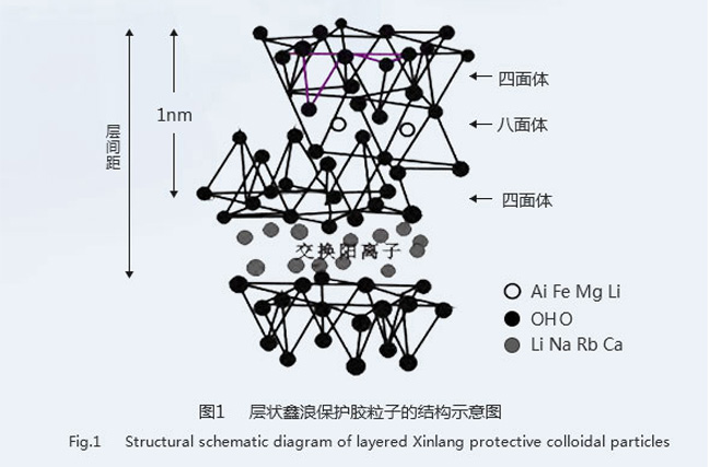 鑫浪多彩保護(hù)膠的化學(xué)結(jié)構(gòu)通式為Mx[LixMg6-xSi8O20 (OH)yF4-y](M=Na、Li),是一種無機(jī)硅酸鹽 層狀納米礦物材,屬于單斜晶系 。由硅-氧四面體和鎂-氧八面體在豎直方向上以 2∶1 的周期性排 列堆積而成,其分子結(jié)構(gòu)如圖 1所示。硅-氧四面體由一個(gè)Si 原子與四個(gè) O 原子連接構(gòu)成,Si原子 在四面體的中心,四個(gè) O 原子在四面體的四個(gè)頂角處;鎂-氧八面體中,鎂原子位于八面體的中心, 八面體頂點(diǎn)的氧原子還與相鄰的鎂原子組成另外的八面體。